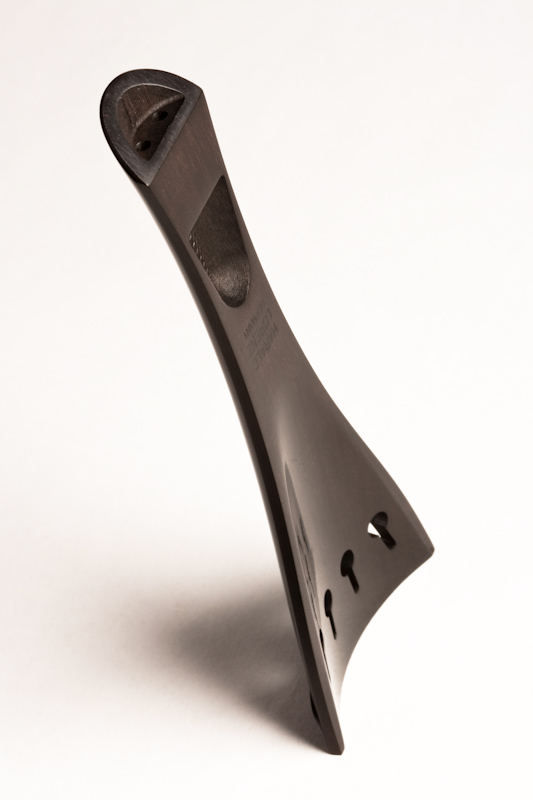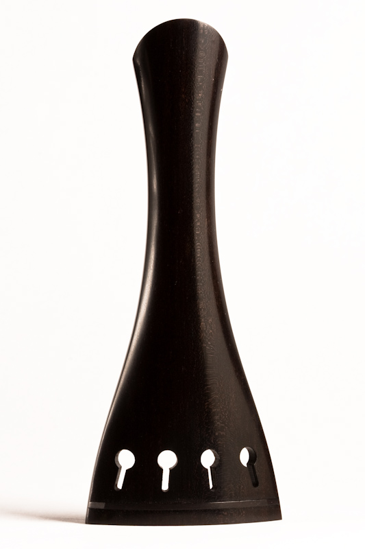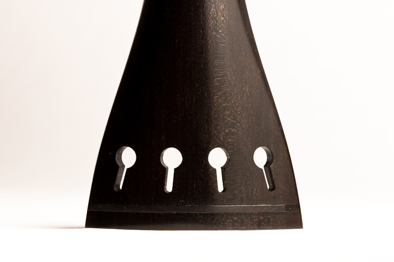 Französischer Saitenhalter mit elegantem Umriss und Proportion. Geringes Gewicht und sehr gute Verarbeitung im Detail. Gleichbleibende Randstärken, Steg lückenlos eingearbeitet. Exakte Schlitze im richtigen Abstand E-G Saite. Löcher für Einhängesaite exakt gebohrt.